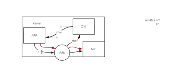 off时:在网络传输文件中,文件会先被IO操作读到APP,然后APP再通过一次IO操作推给内核去进行网络传输。